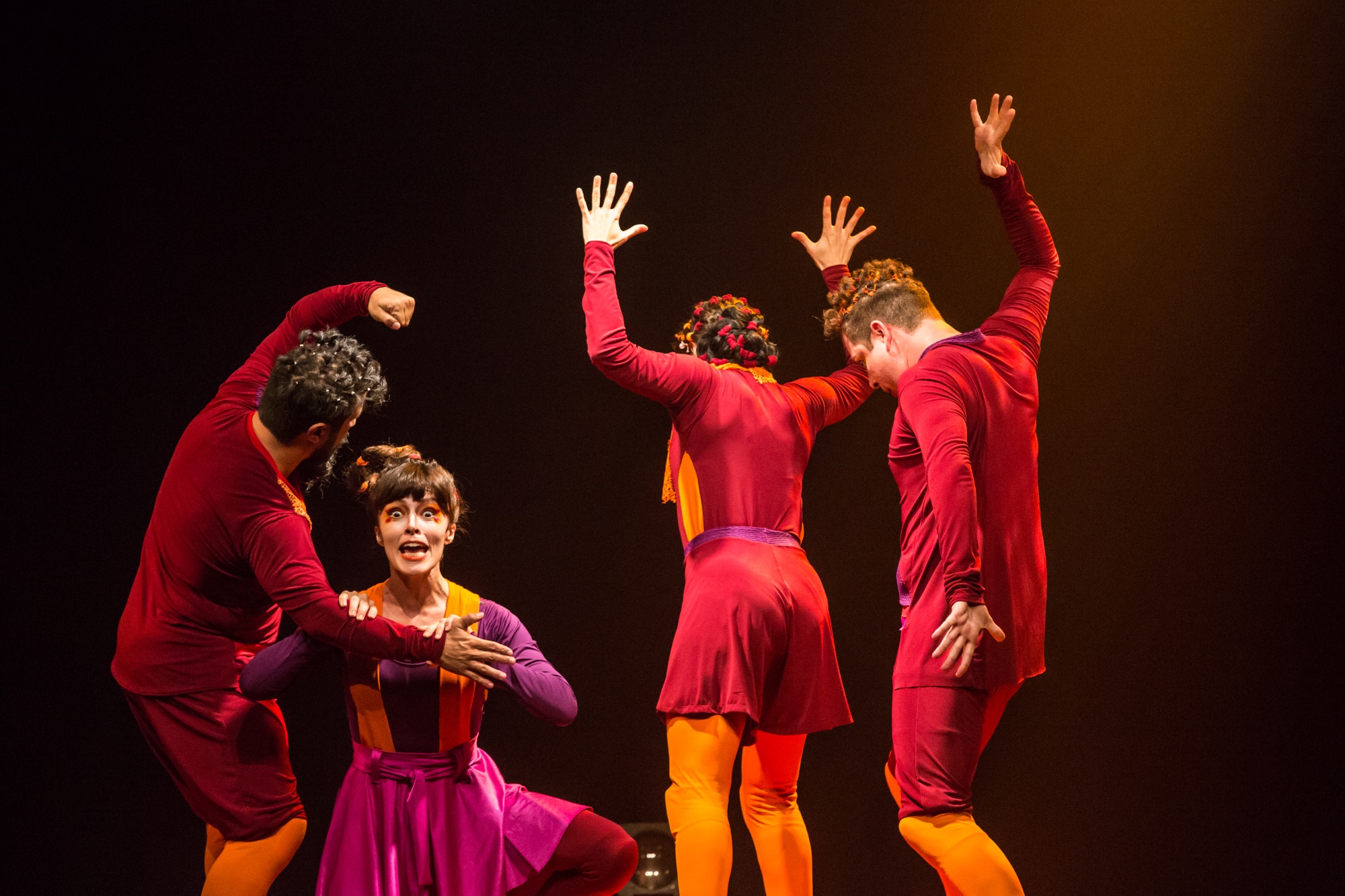 Sem cenários ou objetos, a peça utiliza teatro físico, pantomima, palhaçaria e sonoplastia vocal ao vivo para criar mundos inteiros apenas com corpo e voz, estimulando a imaginação de forma potente.