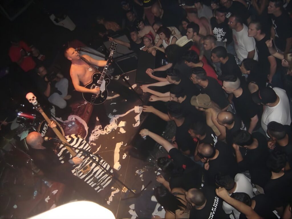 O Banane Metalik é uma banda francesa que mistura o heavy metal e o thrash com o psychobilly. Vieram com muita vontade de tocar aqui, já que tinham acabado de lançar o disco clássico “Sex, Blood and Gore’n’Roll”.
