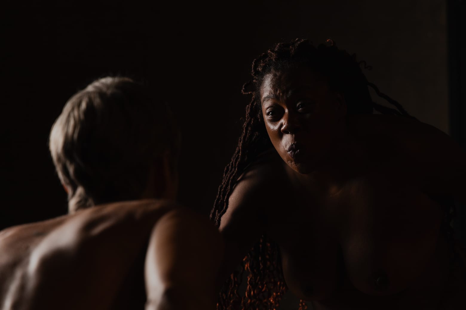 E então Ciça volta, olha para os presentes, e profere frases que os outros a disseram, em contextos onde a vulnerabilidade se encontrava no simultâneo afetamento entre gênero e racialidade. Precisamente desconfortável, o que antes era um jogo teatral, numa dinâmica aparentemente simples, denuncia-se testemunho da atriz e personagem.