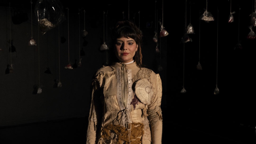 O cenário se mostra apenas visual, sem outra função dentro do espetáculo, mesmo que em alguns momentos a atriz rasgue alguns dos sacos – o que acontece de uma forma um tanto tímida. Penso que uma maior utilização dos sacos plásticos pendurados pudesse dar uma outra dinâmica em cena, tanto de movimento, quanto de mudança no próprio cenário, que aumentaria e diversificaria o andamento da peça. A própria associação dos objetos com elementos hospitalares poderia ficar mais evidente, já que estão colocados de forma menos representativa.
