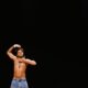 Rafael não precisa de muito em cena; o jogo está entre ele, o público e a iluminação.